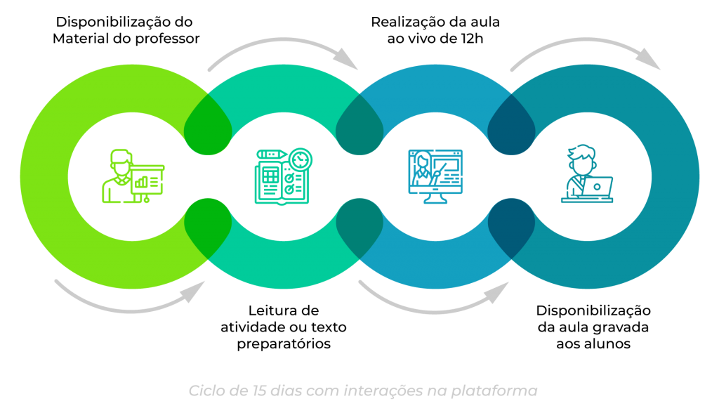As aulas são dinâmicas, com professores e assuntos alternados.